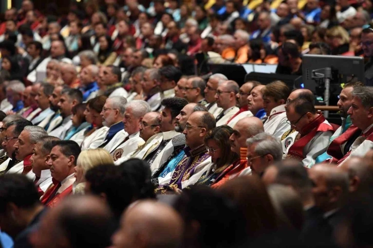 Türkiye’deki tüm üniversitelerin üst yönetimleri, akademisyenleri ve başarılı öğrencilerinin katıldığı törenin açılış konuşmasını yapan YÖK Başkanı Prof. Dr. Erol Özvar, artan yükseköğrenim talebi, deprem bölgesindeki destekler ve sürdürülebilirlik çalışmalarının yanı sıra, ulusal ve uluslararası projelere ve yapay zekâ odaklı araştırmalara vurgu yaparak Türkiye’nin en fazla uluslararası öğrenciye ev sahipliği yapan ülkeler arasında yer almasını hedeflediklerini söyledi.