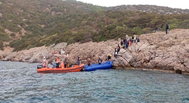 Muğla’nın Bodrum ilçesinden yasadışı yollarla Yunan adalarına gitmeye çalışan 39 göçmen Karaada’da mahsur kalınca, Sahil Güvenlik ekipleri imdadına yetişti.