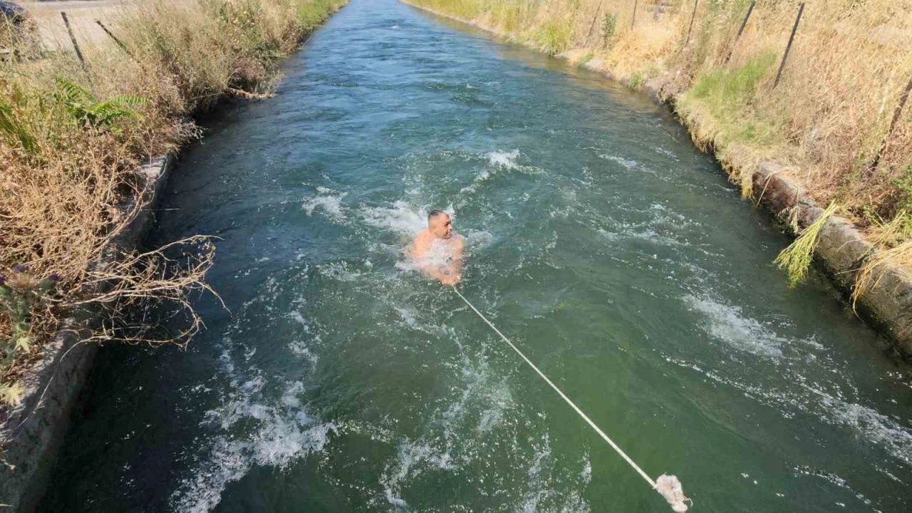 Gençler, serinlemek amacıyla köprü üzerinden kanala atlayarak yüzdü. Akıntıya karşı önlem olarak köprüye halat bağlayan gençler, bu halata tutunarak güvenliklerini sağladıklarını, küçüklüklerinden beri aynı yerde yüzdüklerini, sulama kanalının onlar için bir gelenek haline geldiğini dile getirdi.