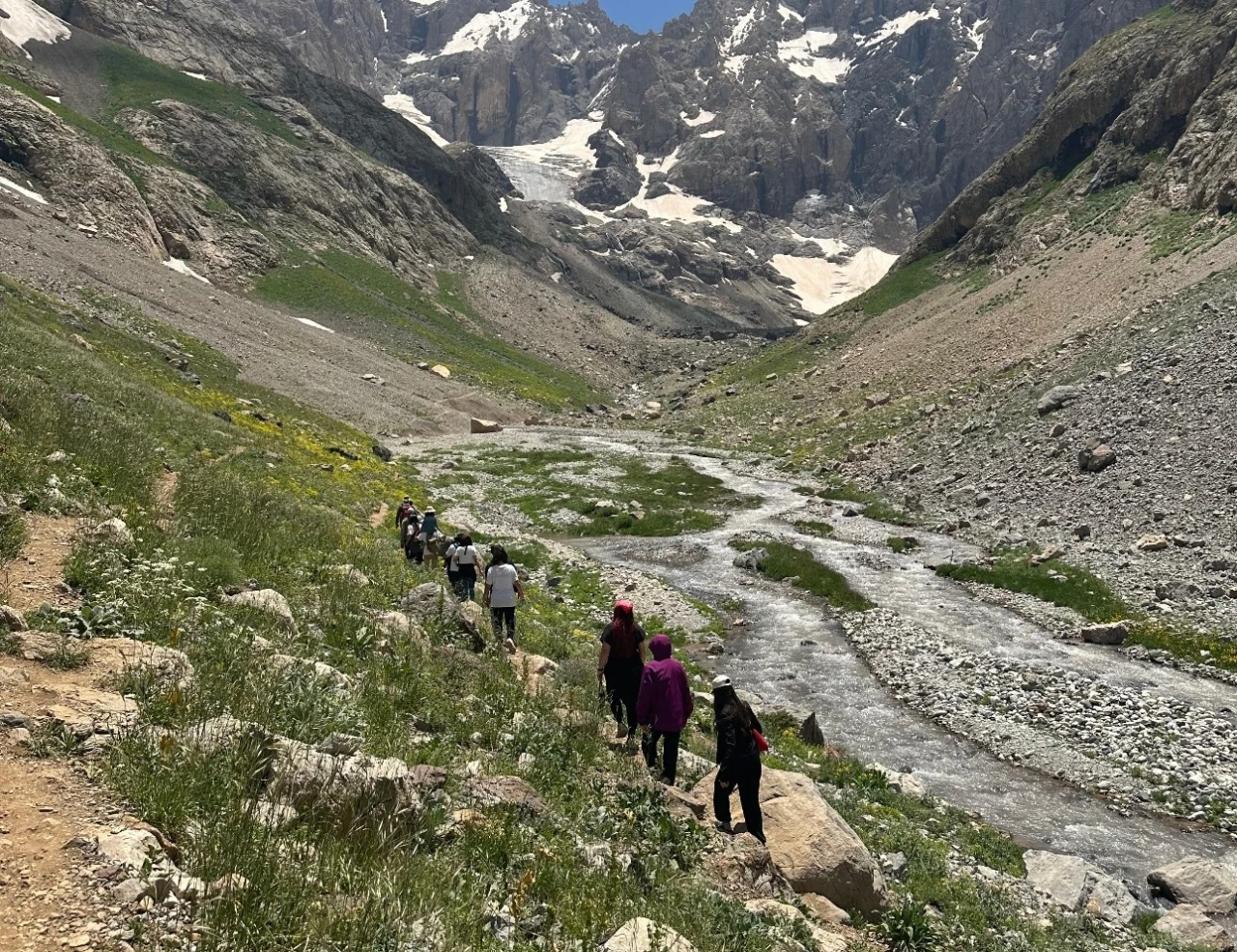 Sabahın erken saatlerinde Yüksekova’da toplanan 40 doğasever, vadiye ulaştıklarında önce keyifli bir kahvaltı yaptı. Ardından 20 bin yıllık buzulları keşfe çıkan doğaseverler, rengarenk açan çiçeklerle kaplı alanlar ile metrelerce yüksekliğindeki karların erimesiyle oluşan akarsuların muhteşem uyumuna tanık oldu. Türkiye’nin en büyük vadi buzullarından birinin bulunduğu bu eşsiz coğrafyada uzun bir doğa yürüyüşü gerçekleştirdiler. "Dört mevsim bir arada yaşanıyor"