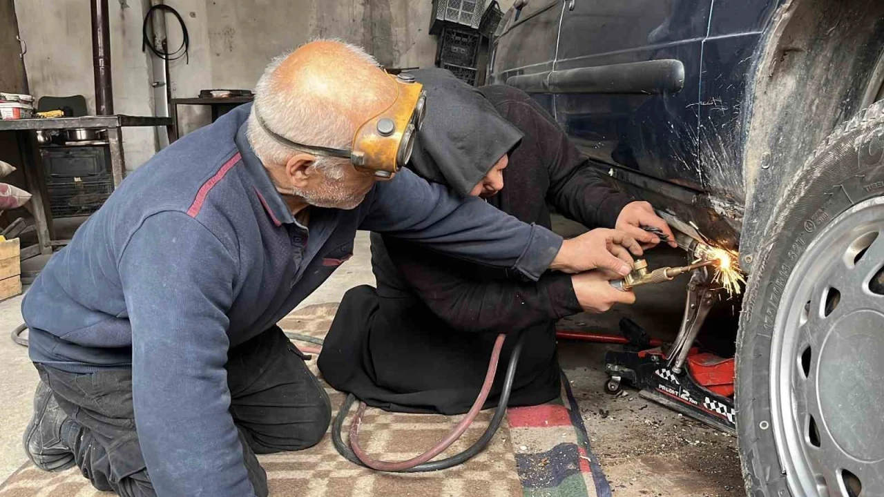 Bayburt’ta yaşayan 59 yaşındaki Hatice Kırlangıç, 40 senedir aynı yastığa baş koyduğu 64 yaşındaki eşi Mehmet Kırlangıç ile beraber 25 yıldır oto kaportacılığı yapıyor. Kalp ameliyatı olan, bel fıtığı tedavisi gören eşini yalnız bırakmayan, sanayinin tek kadın çırağı Hatice Kırlangıç, gençlere seslenerek, "Eşinizi ilk yokuşta bırakıp kaçmayın, destek olun. Hayat müşterektir" dedi.