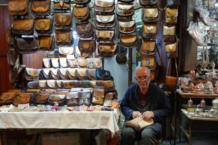 Gaziantep’te Bakırcılar Çarşısı’ndaki 5 metrekare dükkanında 65 yıldır dede mesleğini yaşatmaya çalışan 75 yaşındaki Tahir Demirci, el yapımı çanta yapıp satarak teknolojiye direniyor.