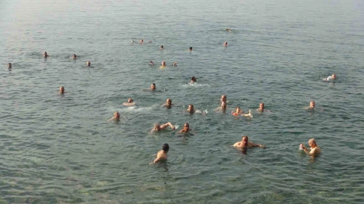 Bitlis’in Ahlat ilçesindeki Van Gölü sahillerine gelen 50 ile 70 arasındaki yetişkin bireyler, sabahın erken saatlerinde yüzerek güne başlıyor.