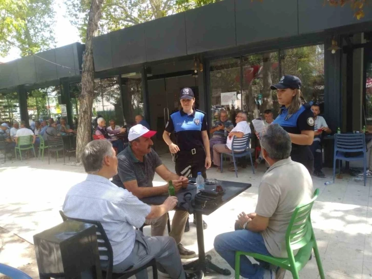 Bilecik Emniyet Müdürlüğü’ne bağlı Toplum Destekli Polislik Şube Müdürlüğü ekiplerince Atatürk Parkı ve çevresinde bulunan kafelerdeki 64 vatandaş ‘Kanmayın Dolandırıcılık Mağduru Olmayın’ projesi kapsamında bilgilendirdi. Ekipler vatandaşlara broşür dağıtarak dolandırıcılık olayı ile karşılaştıkları zaman izlemesi gereken yollardan bahsetti.
