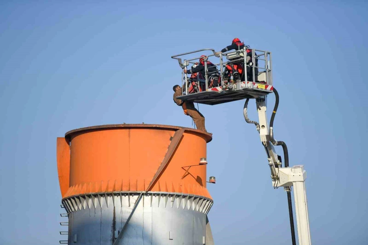 İzmir’in Bornova ilçesinde temizlik için çıktıkları fabrika bacasında iskelenin çökmesi sonucu mahsur kalan 2 işçi, 4 saatlik operasyonla kurtarıldı.