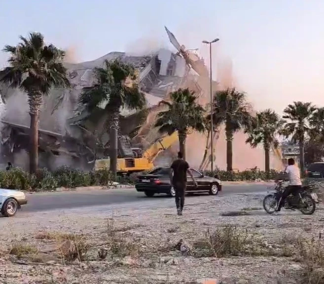 Hatay’ın Antakya ilçesinde kontrollü olarak yıkılan 9 katlı binanın yerle bir olma anı kameraya yansıdı.