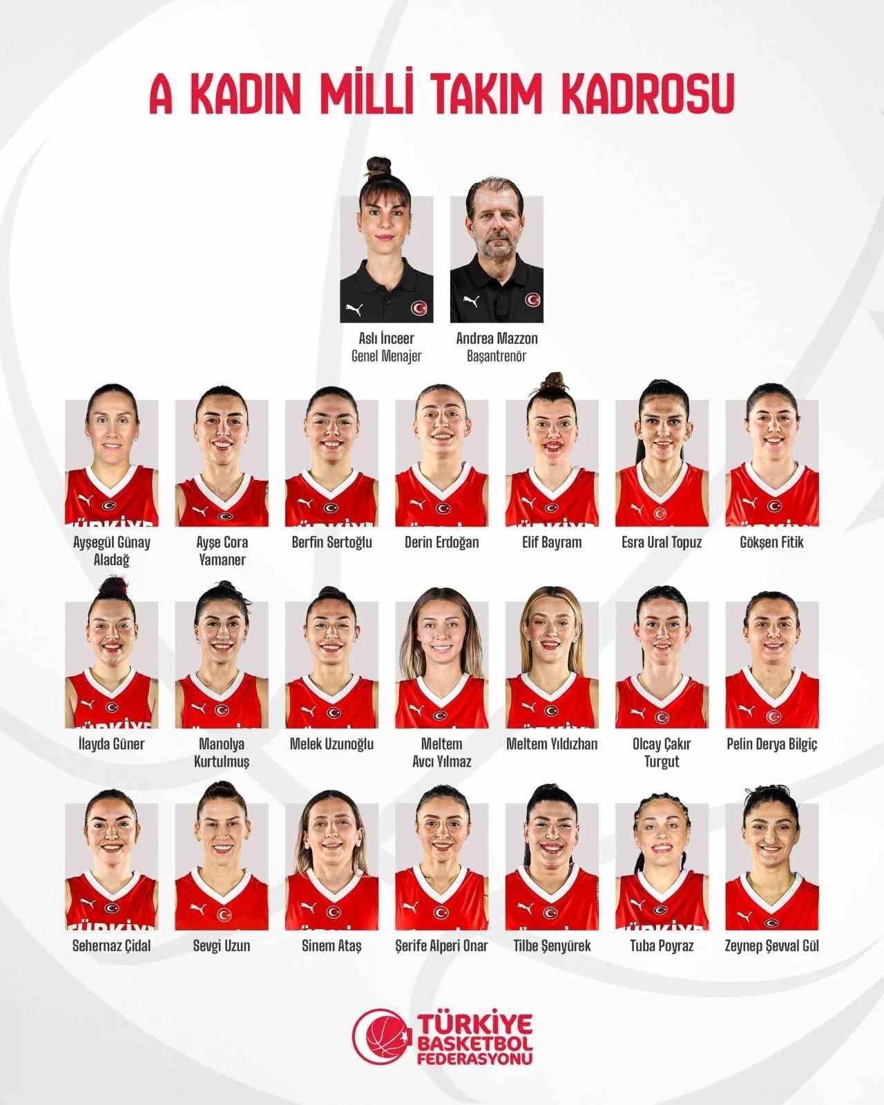 A Milli Kadın Basketbol Takımı’nın kamp kadrosu şu şekilde: "İlayda Güner, Meltem Yıldızhan, Pelin Derya Bilgiç (Beşiktaş), Ayşegül Günay Aladağ, Tuba Poyraz (Botaş), Esra Ural Topuz, Manolya Kurtulmuş, Sinem Ataş (ÇBK Mersin), Berfin Sertoğlu, Melek Uzunoğlu (Emlak Konut), Olcay Çakır Turgut, Sevgi Uzun, Şerife Alperi Onar, Tilbe Şenyürek (Fenerbahçe), Ayşe Cora Yamaner, Derin Erdoğan, Elif Bayram, Gökşen Fitik, Sehernaz Çidal, Zeynep Şevval Gül (Galatasaray), Meltem Avcı Yılmaz (Melikgazi Kayseri Basketbol)."