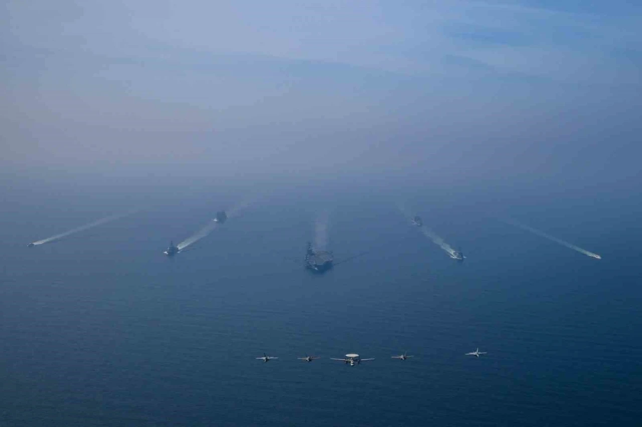 ABD Merkez Kuvvetler Komutanlığı’ndan (CENTCOM) yapılan açıklamada, "Abraham Lincoln Uçak Gemisi Taarruz Grubu, 2 askeri ikmal gemisi ve 2 ABD Sahil Güvenlik gemisinin eşliğinde bugün Umman Denizi’nde seyir gerçekleştirdi" denildi.