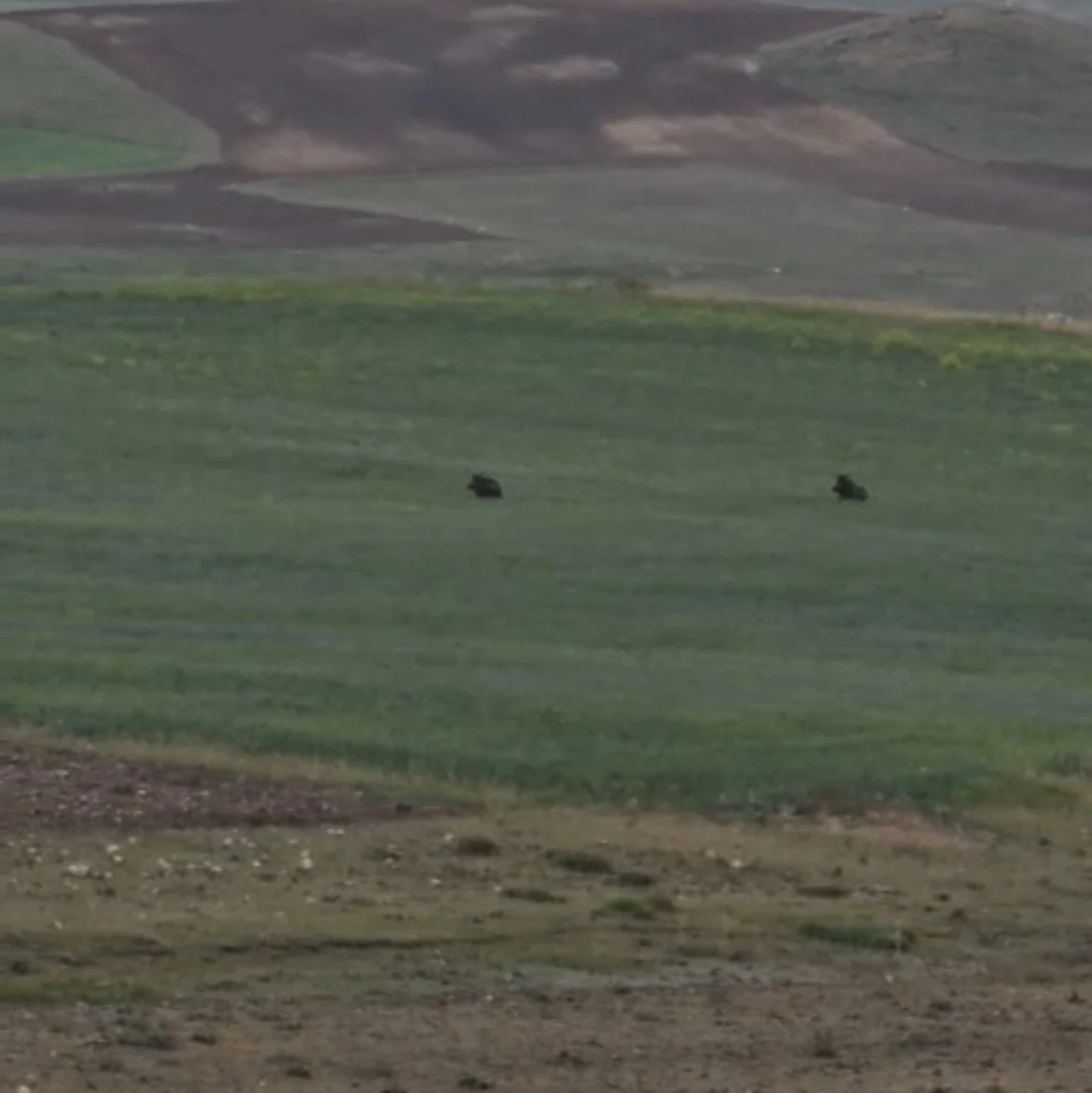 Ağrı’nın Diyadin ilçesinde boş arazide yiyecek arayan 2 domuz görüntülendi.