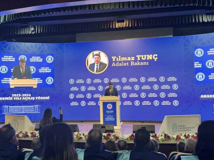 Adalet Bakanı Yılmaz Tunç, Ankara Yıldırım Beyazıt Üniversitesi (AYBÜ) Akademik Yılı açılış törenine katıldı. Bakan Tunç, akademik yılı açış dersinde yaptığı konuşmada geçmişte üniversitelerin zor günler yaşadığını hatırlatarak, “Her darbe döneminden önce üniversitelerimiz karıştırıldı, gencecik öğrencilerimizi hayatının baharında kaybettik. Üniversite duvarları arasında on yıllarca bilim değil kavga, idealler değil ideolojiler konuşuldu. Kapılarında gözyaşları sel oldu, gencecik kızlarımızın kılık kıyafeti nedeniyle istikballeri karartıldı. Ama son 21 yılda bu ülkenin istikbali için, milletimizin aydınlık yarınları için temel hak ve özgürlükleri, bunun yanında demokrasiyi güçlendiren reformları bir bir hayata geçirdik. Adeta bir sessiz devrimi milletimizle birlikte gerçekleştirdik” ifadesini kullandı. Sivil anayasa vurgusu