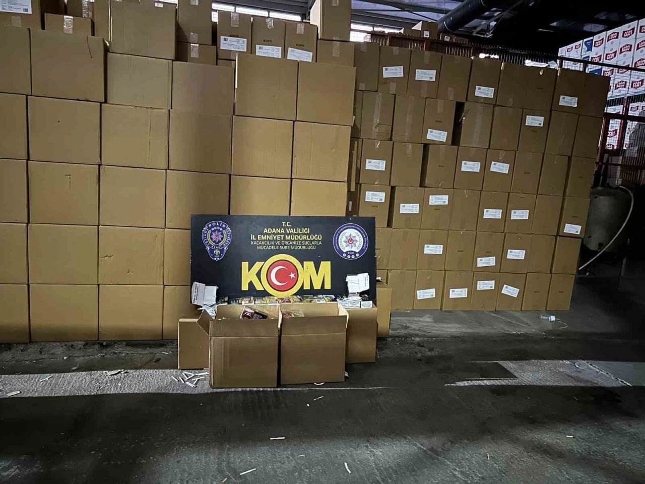 Adana’da piyasa değeri 13 milyon TL olan 18 milyon 330 bin adet gümrük kaçağı makaron ele geçirildi.