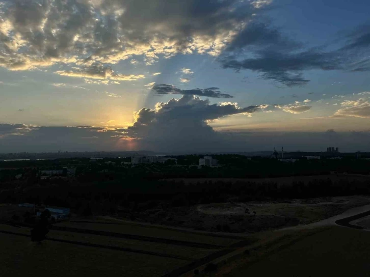 Adana’da gün batımı sırasında güneşin bulutların arkasından kaybolması kartpostallık görüntüler oluşturdu.