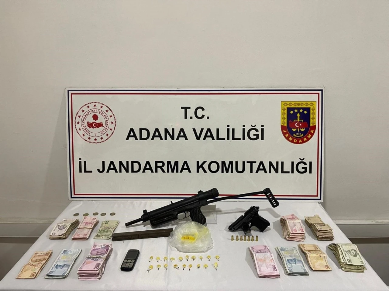 Adana İl Jandarma Komutanlığı Kaçakçılık ve Organize Suçlarla Mücadele birimi ile Ceyhan İlçe Jandarma Komutanlığı ekipleri bir evde uyuşturucu imalatı ve ticareti yapıldığı bilgisine ulaştı. İhbar üzerine eve baskın düzenleyen ekipler, 4 kilogram sentetik uyuşturucu yapılabilecek hammadde, ruhsatsız 2 tabanca ve çok sayıda tabanca mermisi ele geçirdi.