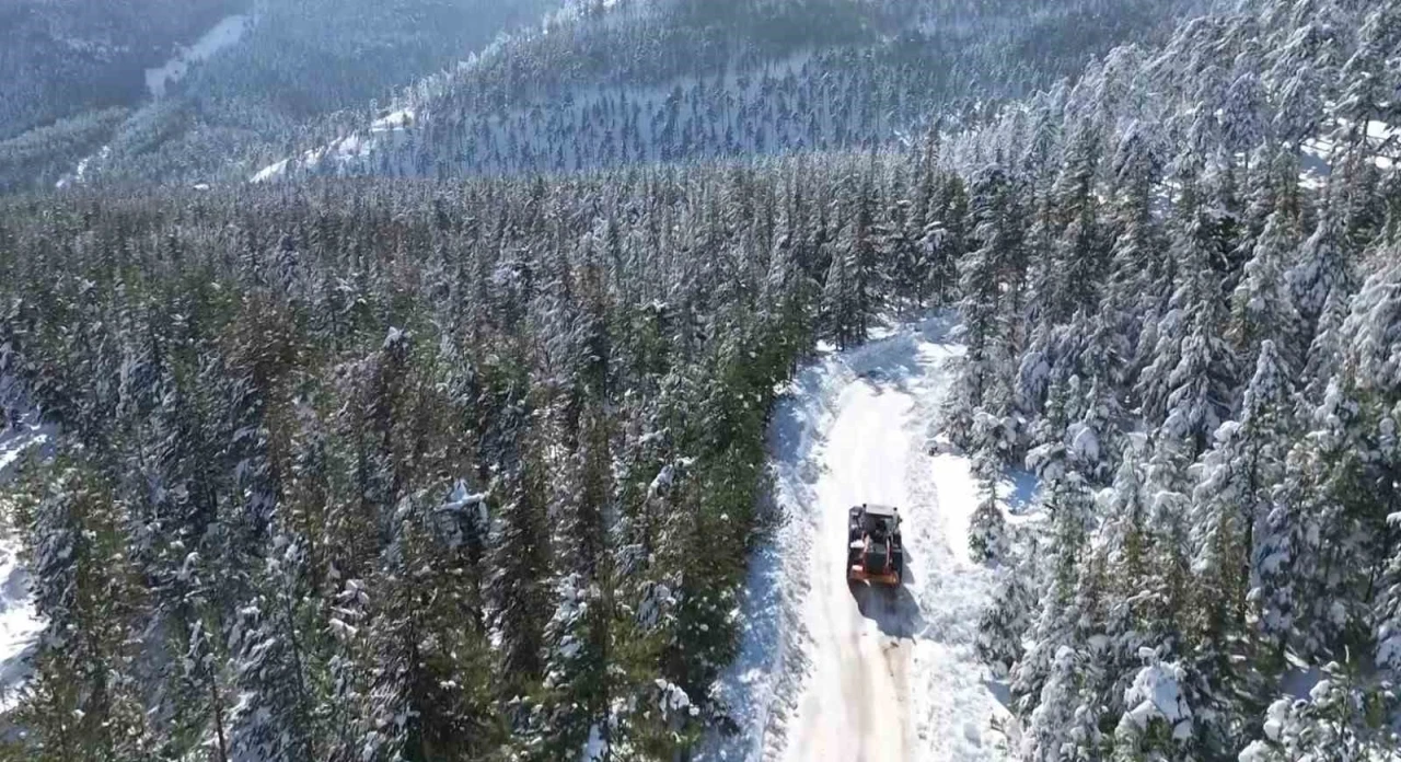 Adana’nın Feke ilçesinde katran ve kızılçam ormanları beyaz örtüyle kaplanırken, ortaya masalları andıran manzara çıktı. Yüksek kesimlerde kar kalınlığı yer yer 1 metreyi aşarken, ekipler kapanan yolları açık tutmak için yoğun mesai harcıyor. Yarıyıl tatiline giren çocuklar ise köy yolları ve rampalarda kızaklar karın keyfini çıkarıyor.