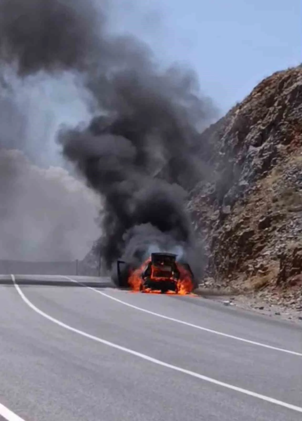 Edinilen bilgilere göre, Adıyaman-Çelikhan karayolunda seyir halinde olan bir otomobil, aniden alev aldı. Motor kısmından yükselen dumanlar kısa sürede tüm aracı sardı. Yangını fark eden sürücü aracı durdurarak kendisini dışarı attı.