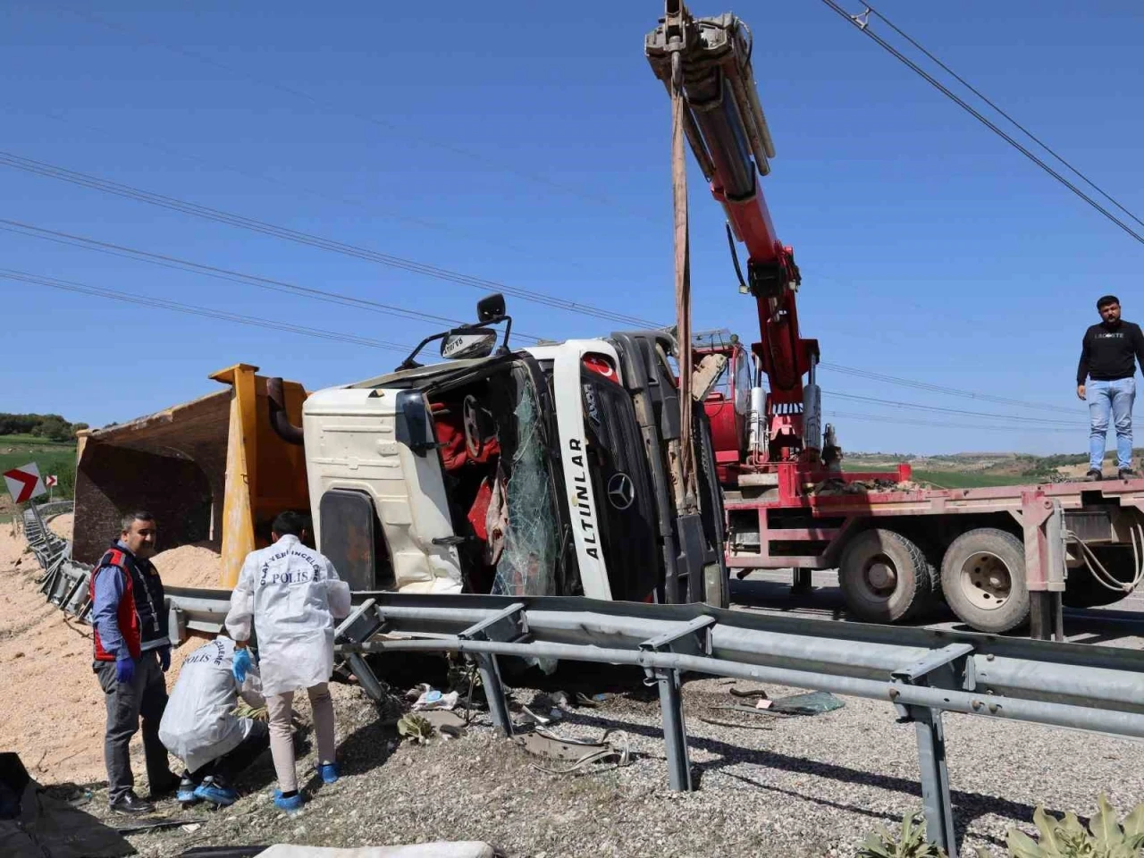 Adıyaman’da viraja girerken sürücüsünün kontrolünden çıkan tır devrildi. Meydana gelen kazada tır sürücüsü hayatını kaybetti.