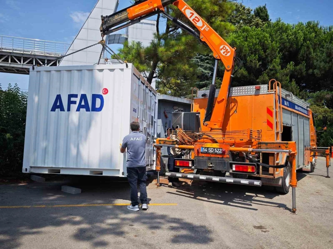 Sakarya’da AFAD koordinasyonunda yürütülen proje çerçevesinde, muhtemel afetlere karşı hızlı ve etkin müdahale sağlamak amacıyla 4 afet konteyneri yerleştirildi.