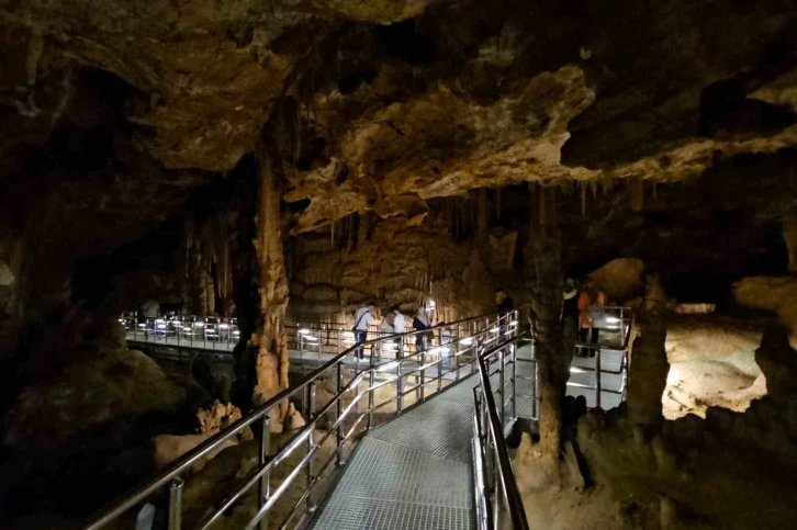 Türkiye’nin sayılı damlataşı mağaralarından birisi olan, sarkıt, dikit ve diğer oluşumlarıyla görenleri kendine hayran bırakan ve giriş ücretlerinde emeklilere özel indirimin de yapıldığı Karaca Mağarası’nda turizm sezonu devam ediyor.