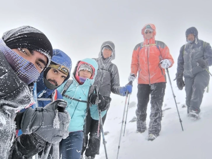Türkiye’nin en yüksek noktası olan Ağrı Dağı’na zirve tırmanışı gerçekleştiren ekip üyelerinin saçı, kaşı ve kirpikleri buz tuttu.
