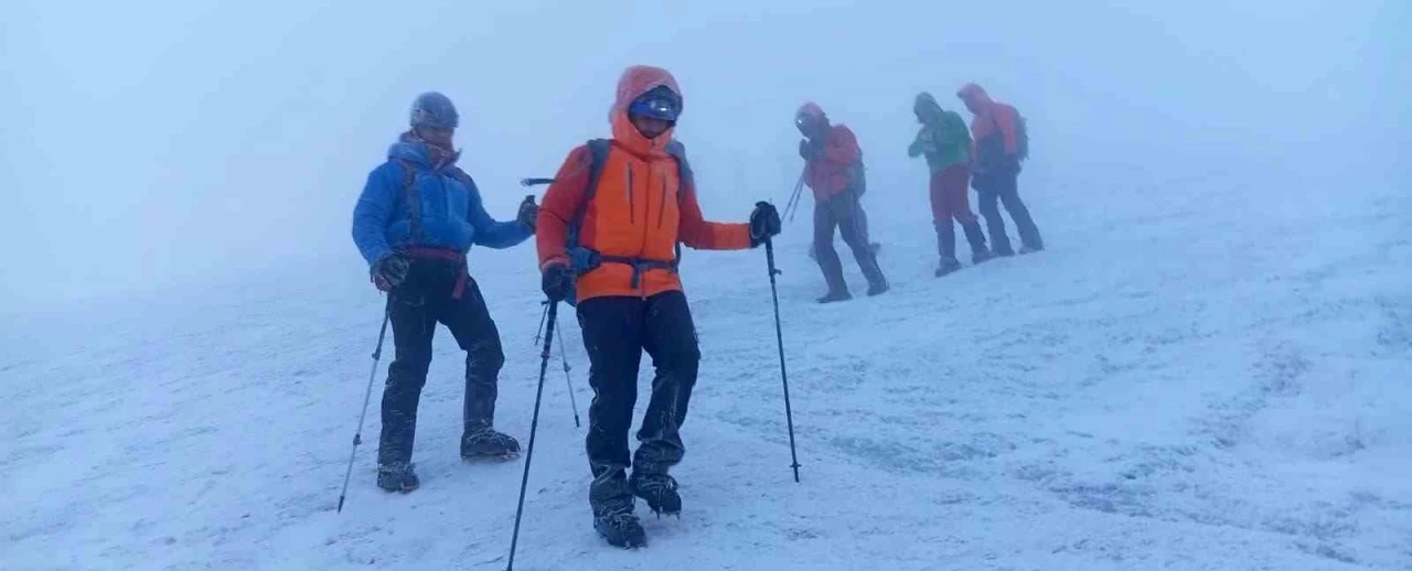 Ağrı Dağı’nda etkili olan kar yağışı ve fırtına, zirve tırmanışı yapan dağcılara zorlu anlar yaşattı.
