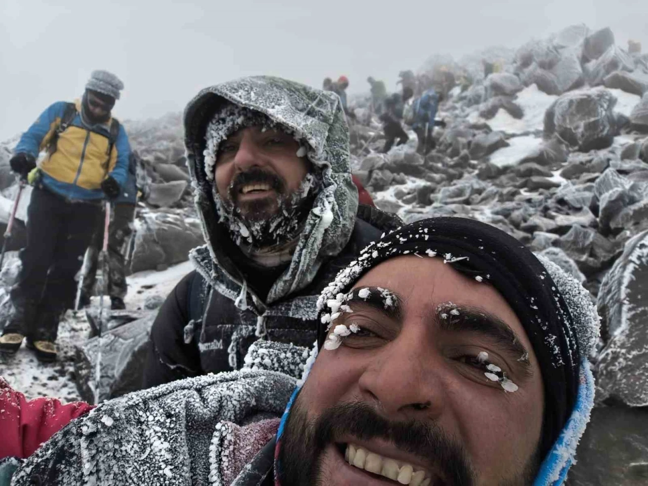 Ağrı Dağı’nda zirve tırmanışı gerçekleştiren bir grup dağcı, hava sıcaklığının eksi 35 dereceye kadar düştüğü bölgede zorlu doğa şartlarıyla mücadele etti. Yoğun sis, şiddetli rüzgar ve buz kesen havaya rağmen tırmanışlarını sürdüren ekip, yerel dağ rehberi Resul Civaş liderliğinde başarıyla zirveye ulaştı. Saç ve sakalları buz tutan dağcılar için tırmanış unutulmaz bir deneyim oldu.