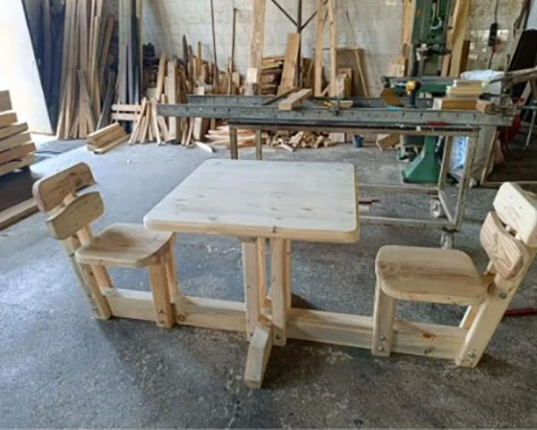 Bilecik’in Osmaneli ilçesinde ahşap atölyesinde çalışan görevliler bank, çardak ve masa üretimine devam ediyor.