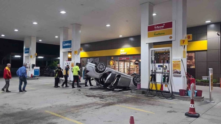 Kayseri’nin Melikgazi ilçesinde akaryakıt istasyonunda çarpışan otomobillerden biri takla attı. Takla atan otomobilin yakıt pompasına çarpmaması faciayı önledi.