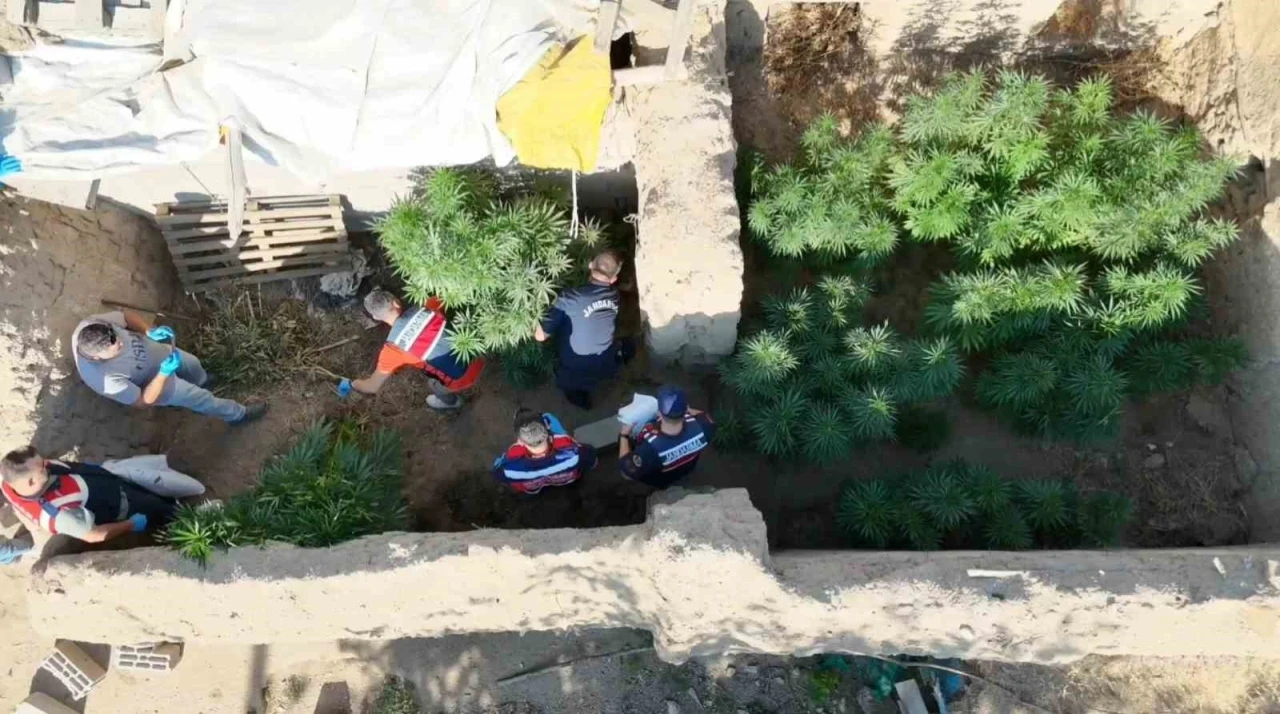 Aksaray’da evinin bahçesinde yasa dışı kenevir yetiştiren şahıs, jandarmanın dron destekli operasyonuyla yakalandı.