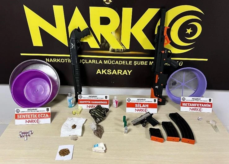İl Emniyet Müdürlüğü Narkotik Suçlarla Mücadele (NSM) Şubesi ekipleri, uyuşturucu madde ticareti ve bulundurma çerçevesinde savcılık koordinesinde 4 ayrı adrese eş zamanlı operasyon düzenledi. Operasyonlarda 7 şüpheli yakalanarak gözaltına alındı. Şüphelilerin adreslerinde yapılan aramalarda 136,11 gram sentetik kannabinoid, 544 adet sentetik ecza hap, 1 gram metamfetamin, 1 gram kokain, 5 adet extacy, 3 bin 300 lira, 2 ruhsatsız tüfek ve 3 kartuş ele geçirildi. Gözaltına alınan şüpheliler emniyetteki işlemlerinin ardından sevk edildikleri adli makamlarca tutuklanarak cezaevine gönderildi.