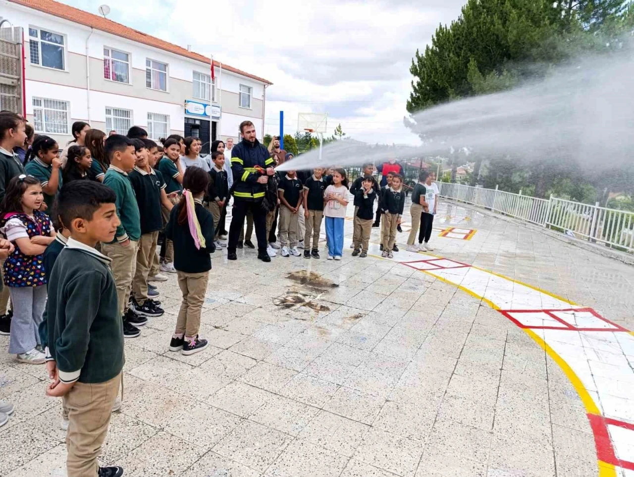 Alaca Belediyesi İtfaiye Müdürlüğü tarafından ilkokul öğrencilerine yönelik yangın eğitimi programı düzenlendi.
