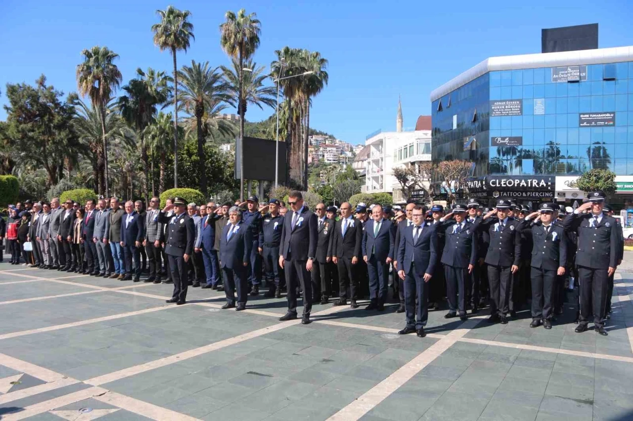 Türk Polis Teşkilatı’nın 180’inci kuruluş yıl dönümü dolayısıyla Hükümet Meydanı’ndaki Atatürk Anıtı’na çelenk sunumu yapıldı. Tören saygı duruşu ve İstiklal Marşı’nın okunması ile sona erdi. Program kapsamında Asri Mezarlık Camii’ndeki Mevlid-i Şerif’in ardından Alanya Garnizon Şehitliği’nde şehit polisler için Kur’an-ı Kerim tilaveti gerçekleştirildi. Törene Alanya Kaymakamı Fatih Ürkmezer, Alanya Belediye Başkan Vekili Servet Ünlü, Alanya İlçe Jandarma Komutanı Binbaşı Hüseyin Direk, Alanya İlçe Emniyet Müdürü Murat Kenan Patat, Alanya Cumhuriyet Başsavcı Vekili Ahmet Kaya ve Polis Teşkilatı mensupları katıldı.