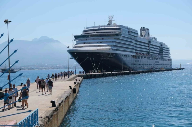 Antalya’nın Alanya ilçesindeki Alanya Limanı’na Hollanda bayraklı Oosterdam yolcu gemisi demirledi. Karaya ayak basan 58 ayrı ülkeden 2 bin 199 yolcu ilçenin tarihi yerlerini gezdi.