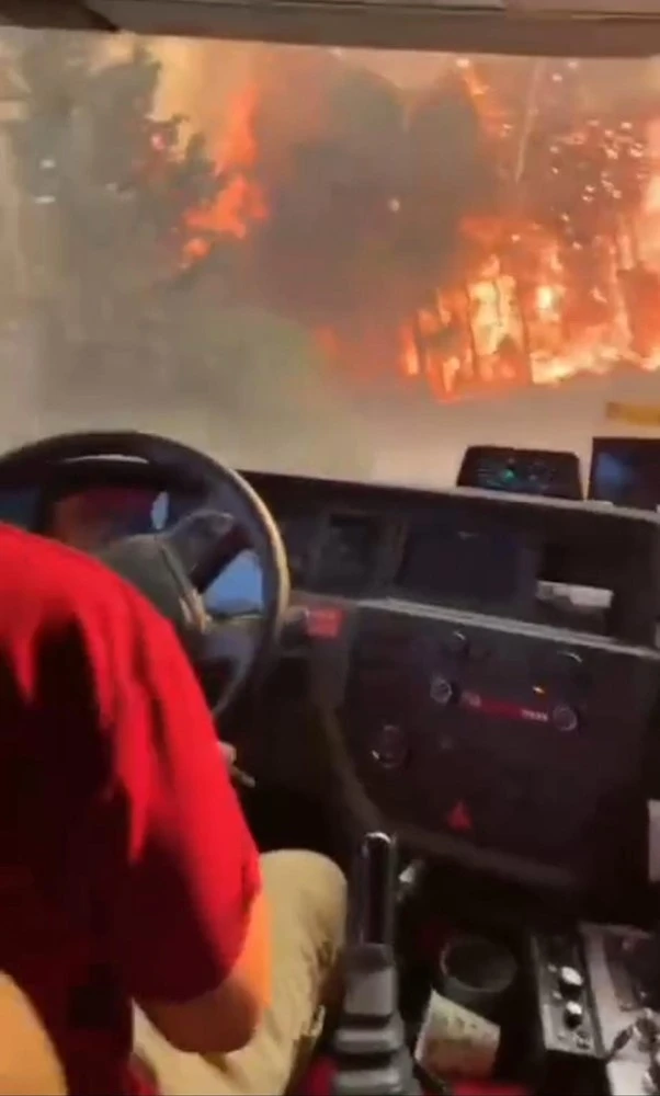 İzmir’de 4 gün önce Aliağa ilçesinde çıkan ve Foça’ya doğru genişleyen orman yangınında, Orman İşletme Müdürlüğü’ne ait bir arazözün alevlerin arasında kaldığı panik anları ortaya çıktı. Ekip, arazöz şoförü Talip Terim’in soğukkanlılığı sayesinde kurtuldu.