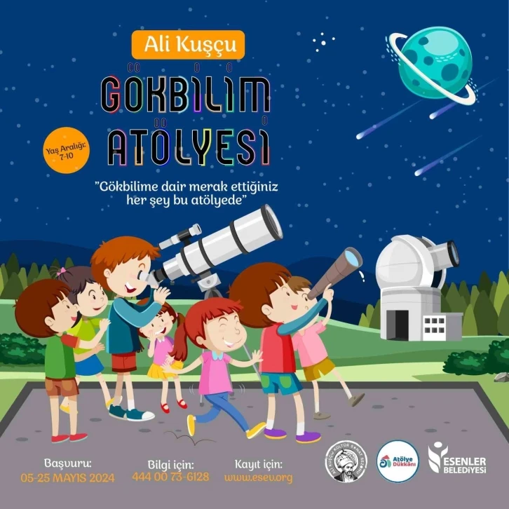 Esenler Belediyesi, milli uzay hamlelerinin artarak devam ettiği bugünlerde Gökbilim Atölyesi ile geleceğin gök bilimcilerini yetiştirecek. Ali Kuşçu Kültür Sanat Sezonu’na özel olarak hazırlanan Ali Kuşçu Gök Bilim Atölyesi’nde bir ay sürecek eğitimlerde çocukların uzay bilimleri hakkında detaylı bilgiye sahip olmaları için teorik ve uygulamalı eğitimler verilecek. “Astronomiye Giriş ve Uzayın Doğası”, “Uzaya İlk Yolculuk ve Alper Gezeravcı” ile “Ay Yapımı” gibi derslerin yanı sıra atölyede deney ve gözlemler de yapılacak. 7-10 yaş aralığındaki çocuklar için düzenlenecek atölyeye başvurular, www.esev.org adresi üzerinden yapılabilecek. Detaylı bilgi için 444 00 73 numaralı telefon aranabilecek. Genç beyinler uzayda gibi hissedecek