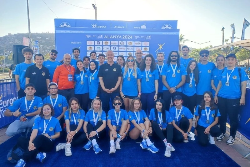 Alanya Alaaddin Keykubat Üniversitesi (ALKÜ) öğrencileri, Alanya’da gerçekleştirilen uluslararası spor organizasyonlarında gönüllü olarak görev alarak şehre katkı sağlama misyonunu sürdürüyor. Spor, sağlık, turizm alanlarındaki çalışmalarıyla Alanya ve bölgesine değer katan ALKÜ, 33. Alanya Avrupa Triatlon Kupası’nda da gönüllü öğrencileriyle fark oluşturdu. Bu prestijli etkinlikte, ALKÜ Spor Bilimleri Fakültesi’nden 30 gönüllü öğrenci, 26 ülkeden gelen toplam 367 sporcunun yarıştığı “Yaş Grupları,” “Elit Erkek,” “Elit Kadın” ve “Halk Triatlonu” kategorilerinde görev aldı. Arş. Gör. Duran Akbaş koordinasyonunda yarışların yönlendirme, start/finish, anti-doping, su ve jant istasyonları gibi kritik noktalarında yer alan öğrenciler, organizasyonun sorunsuz ilerlemesinde rol üstlendi. ALKÜ Spor Bilimleri Fakültesi Dekanı Prof. Dr. Hamdi Alper Güngörmüş de gönüllü öğrencilerine moral vermek ve organizasyonun etkin bir şekilde yapılması noktasında yarışlar süresince gönüllü öğrenciler için etkinlik alanındaydı. Rektör Türkdoğan’dan tebrik