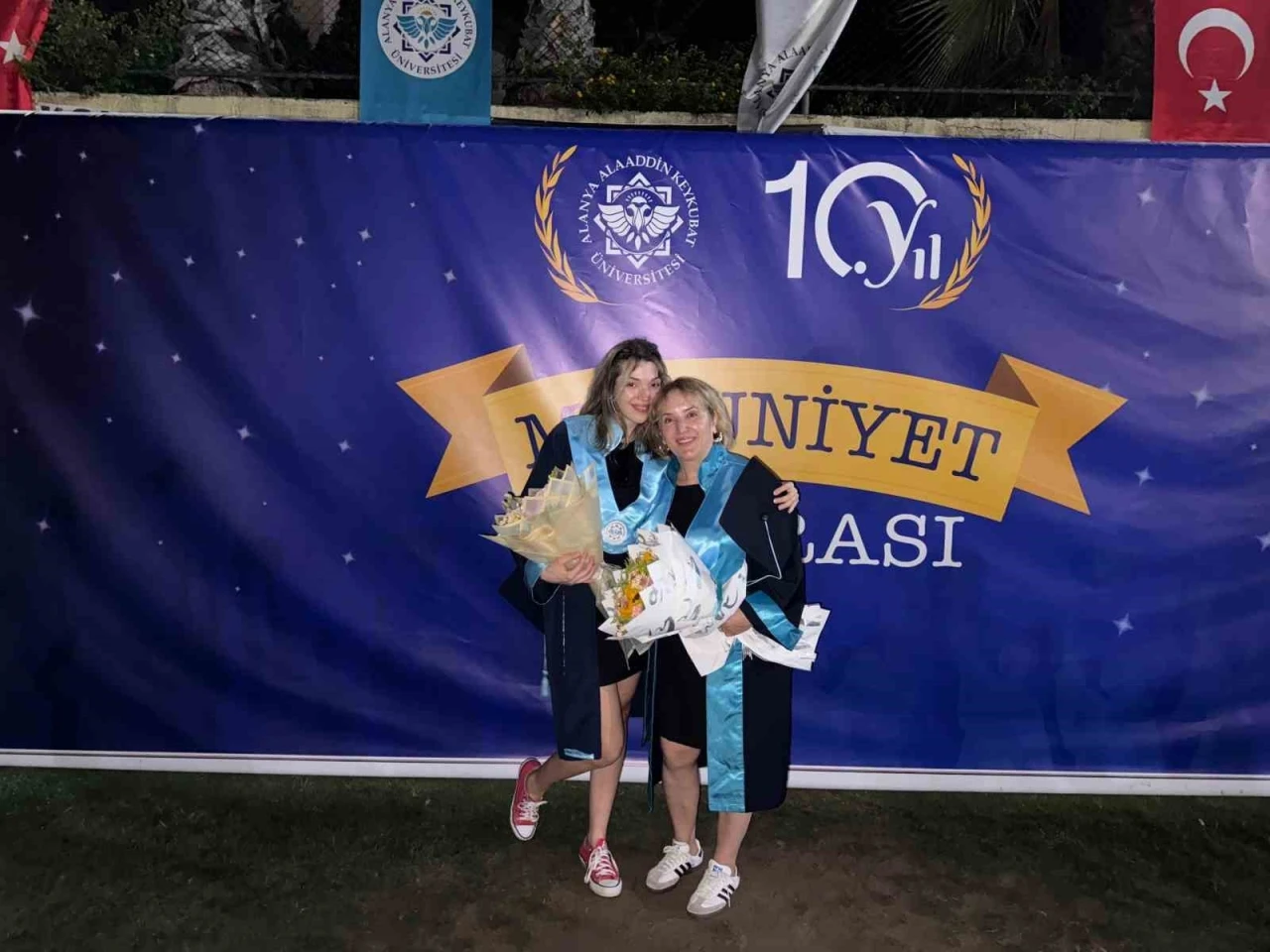 Alanya Alaaddin Keykubat Üniversitesi (ALKÜ) 2024-2025 Akademik Yılı Mezuniyet Töreni, bu yıl unutulmaz anlara sahne oldu. Törende, Tıp Fakültesi’nden mezun olan Ülkü Aslan ile Rahmi Büyükballı Meslek Yüksekokulu İşletme Yönetimi bölümünü birincilikle tamamlayan annesi Fatma Aslan, birlikte mezuniyet coşkusu yaşadı.