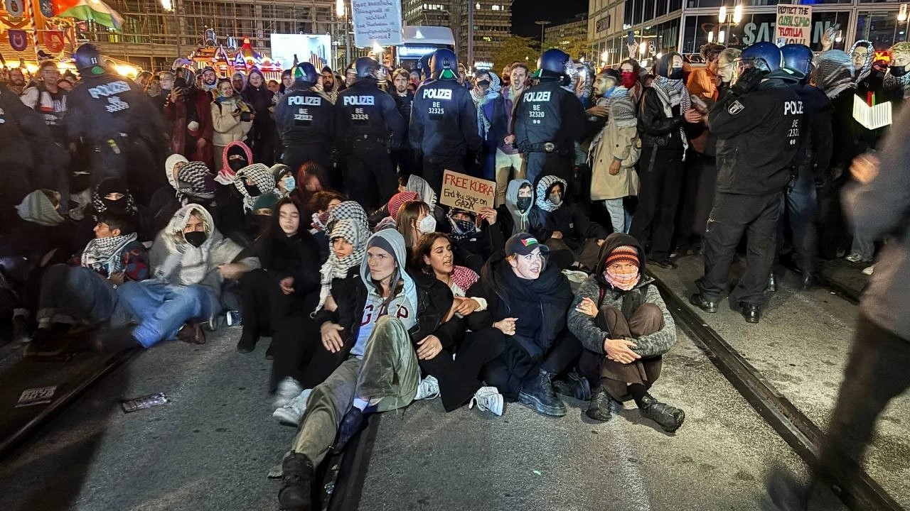 Almanya’nın başkenti Berlin’de, İsrail’in insani yardım ulaştırmak üzere Gazze’ye doğru yol alan Küresel Sumud Filosuna saldırısı ve aktivistleri alıkoyması protesto edildi. Berlin polisi göstericilere sert müdahalede bulunurken çok sayıda göstericiyi de gözaltına aldı.