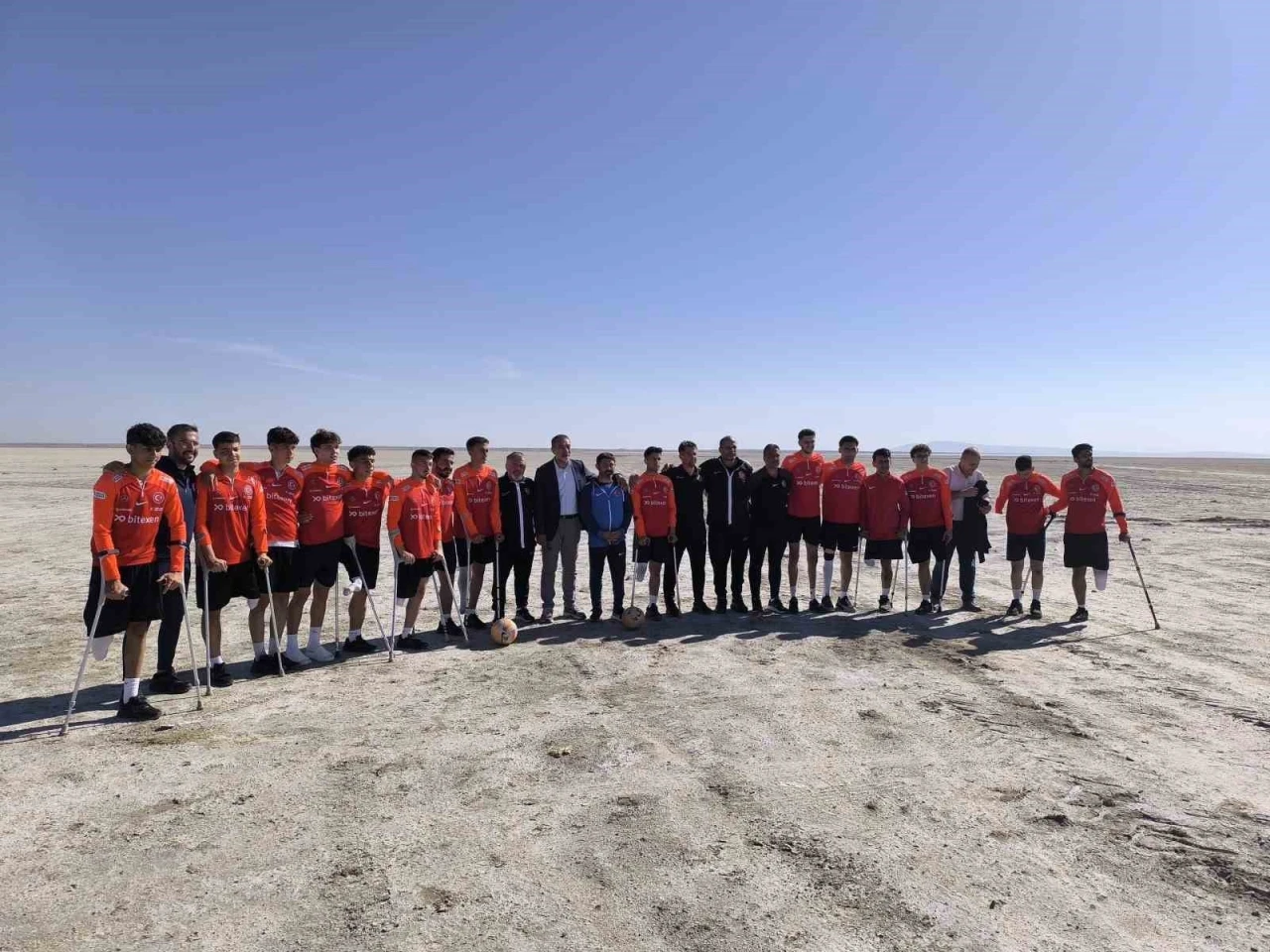 Ampute Milli Futbol Takımı, Türkiye’deki önemli sulak alanlardan bir tanesi olan Seyfe Gölü Kuş Cennetinde, kuraklık ve çölleşmeye dikkat çekmek için antrenman yaptı.