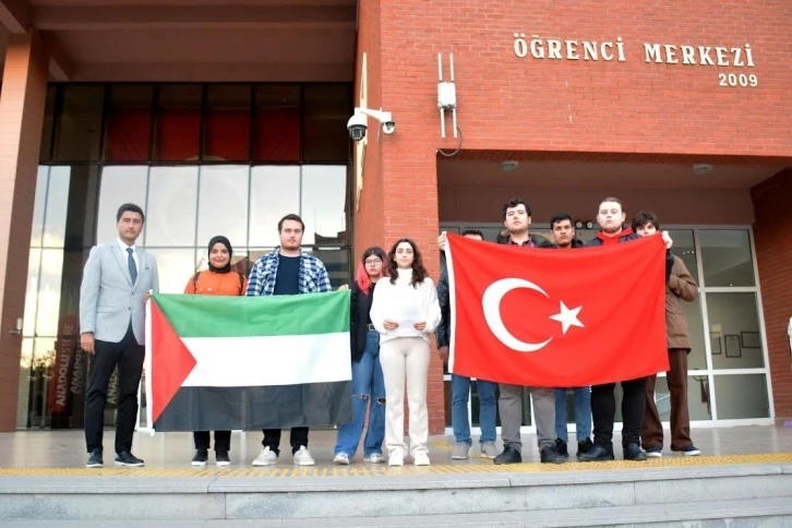 Anadolu Üniversitesi Öğrenci Kulüpleri, Öğrenci Merkezi’nde açıklama yaparak İsrail’in Filistinli sivillere yönelik saldırılarını kınadı.
