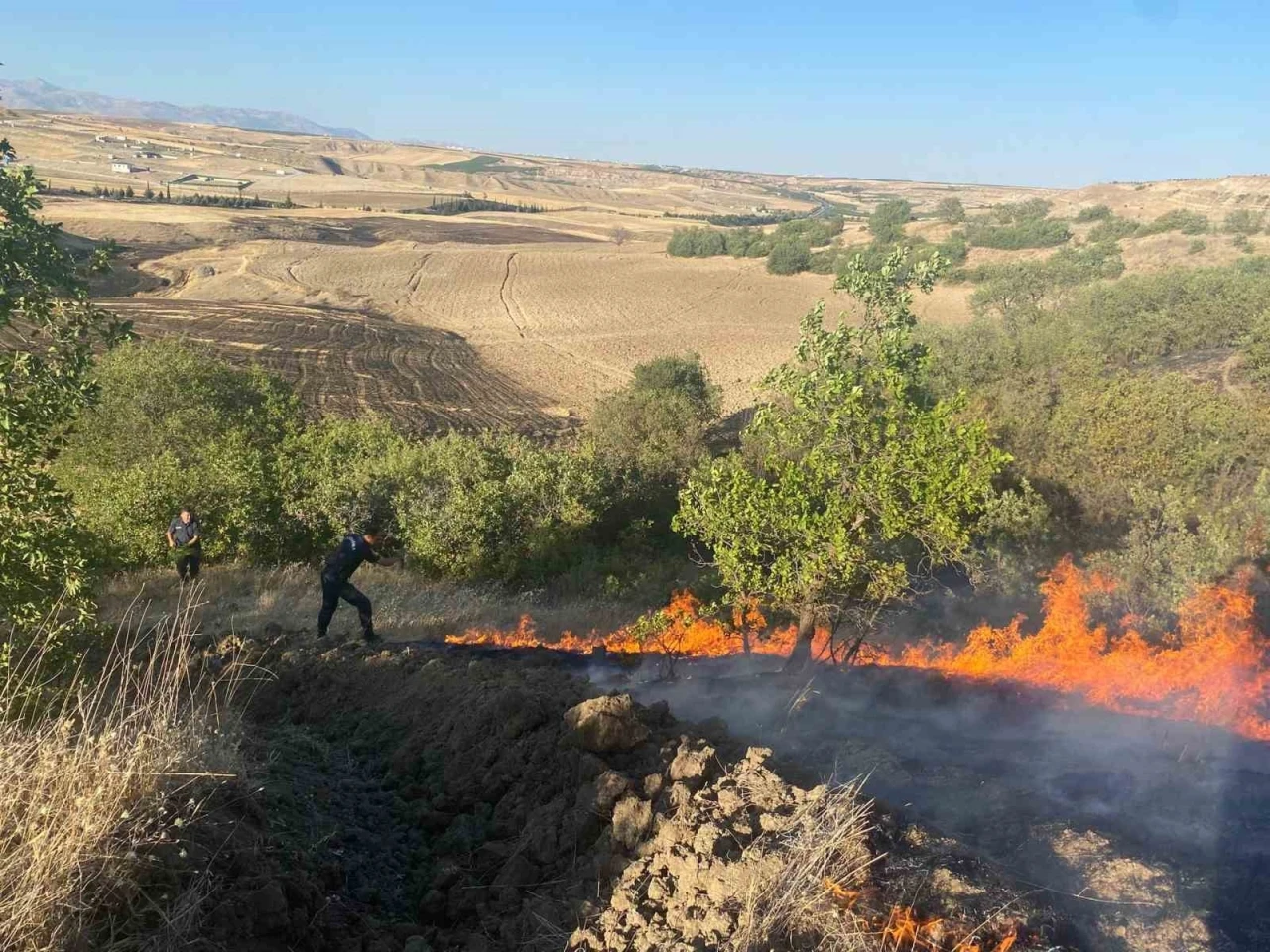 Adıyaman’da meydana gelen anız yangının bahçelere sıçraması korkuttu.