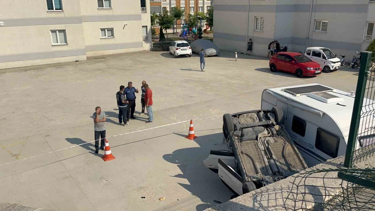 Eskişehir’de direksiyon hâkimiyetini kaybeden anne ve 14 yaşındaki kızı, araçla 5 buçuk metre yükseklikten site bahçesine uçtu. Kazada anne ve kızı hafif yaralanırken, bahçede oynayan çocukların o sırada olay yerinde bulunmaması derin bir nefes aldırdı.