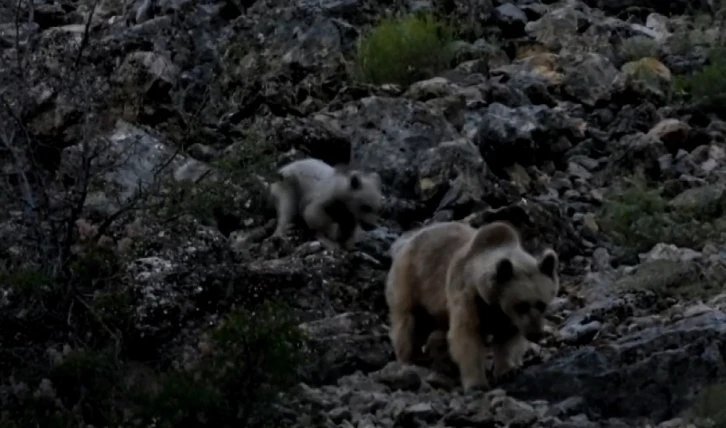 Doğa Koruma ve Milli Parklar Genel Müdürlüğü ekiplerince Tunceli’nin Pülümür Vadisinde yapılan koruma ve kontrol çalışmaları sırasında anne bozayı ile 3 sevimli yavrusu görüntülendi. Ormanlık alandan yiyecek aramak için aşağı bölgeye inen anne ve bozayı görüntülenmelerine aldırış etmeden uzun süre yiyecek aradı. Yavru ayılar zaman zaman birbiriyle oyun oynarken o anlar kamera tarafından kayıt altına alındı.