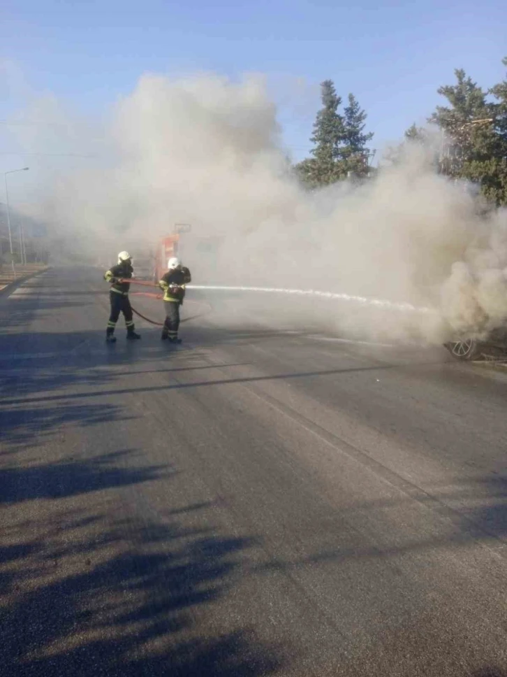 Yangın, E-5 karayolu Antakya ilçesi Serinyol Mahallesi’nde meydana geldi. Seyir halinde ilerleyen otomobilin motor kısmından alevler yükselmeye başladı. Sürücünün Acil Çağrı Merkezi’ne ihbar vermesi üzerine bölgeye itfaiye sevk edildi. Yanan otomobil, ekiplerin müdahalesiyle söndürüldü. Soğutma çalışmalarının gerçekleştirildiği araçta maddi hasar oluştu.