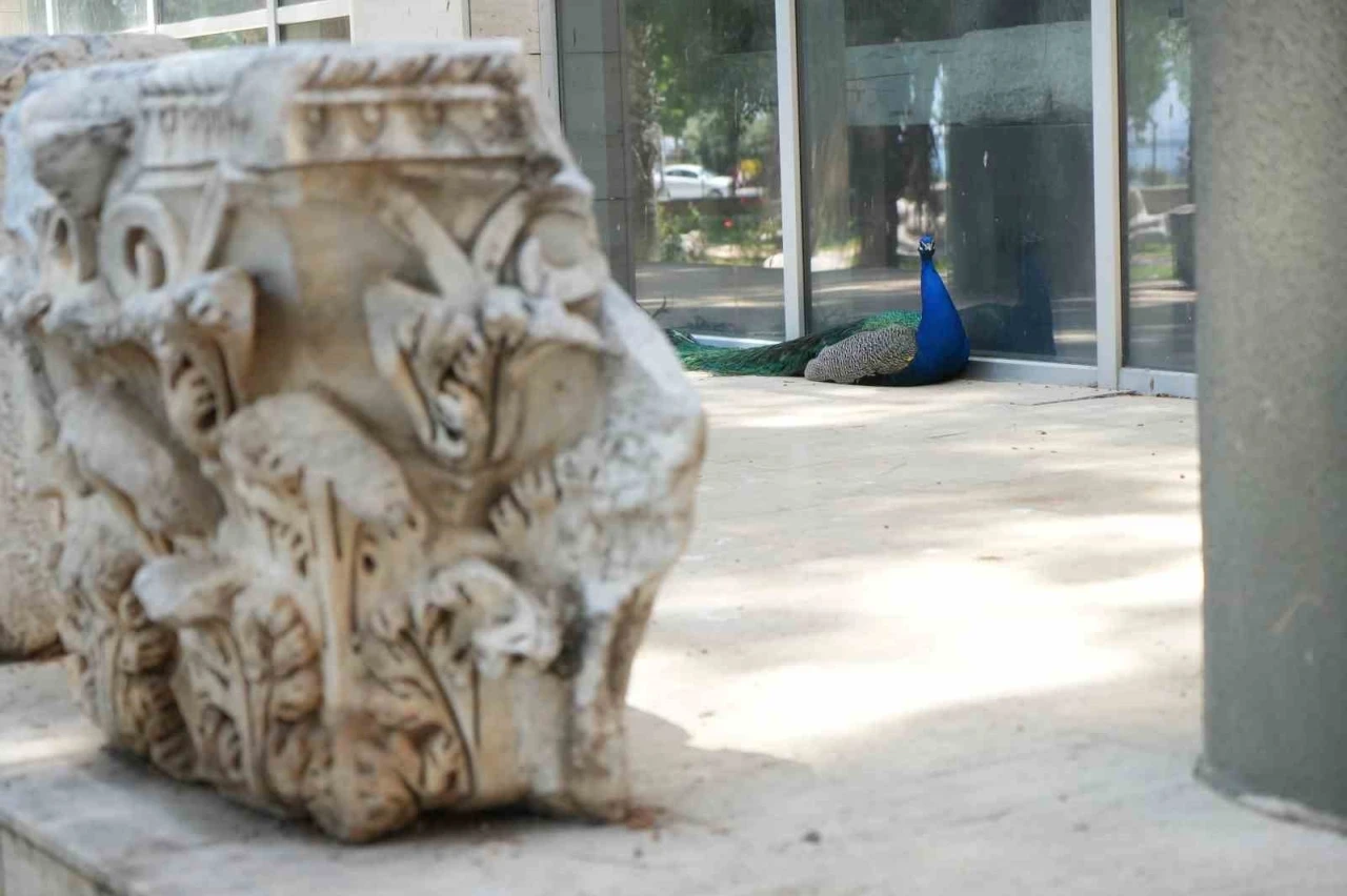 Antalya Arkeoloji Müzesi’nin gölgeliklerle sarılı bahçesinde beyaz ve mavi tüyleriyle süzülen tavus kuşları, tarihi eserlerin arasında sessiz birer ev sahibi gibi dolaşıyor. Ziyaretçiler müze bahçesine adımlarını attığı an, bazen bir çatıda kanat çırpan beyaz tavus kuşuyla, bazen amforaların gölgesinden süzülen göz alıcı yeşil kuyruğuyla karşılaşıyor. Bahçedeki antik kalıntılarla iç içe geçmiş doğal yaşam, müzeyi yalnızca bir sergi mekânı değil, aynı zamanda yaşayan bir açık hava atmosferine dönüştürüyor. 1980’lerden bugüne