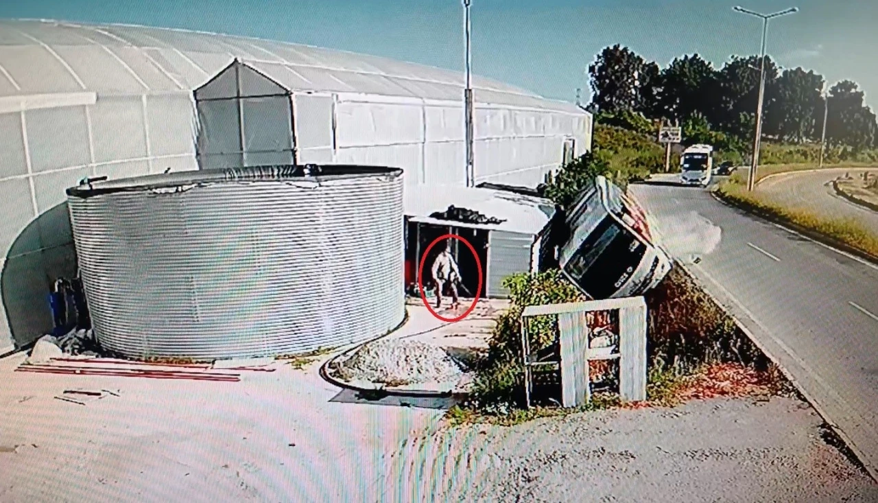 Kaza anı muz serasının güvenlik kamerasına saniye saniye yansıdı. Görüntülerde, tur midibüsünün muz serasının yakınındaki virajı alırken hızlı olmadığı, virajı aldıktan sonra yoldan çıkarak şarampole muz serasının önüne devrildiği görüldü. Tur midibüsünün devrilmesi sırasında seranın önündeki tavuk kümesinin kapısında bulunan İsa Özden’in korkuyla kendisini seraya doğru attığı görülürken, tavukların korku içerisinde kümeslerden çıkmaya çalıştığı gözlendi.
