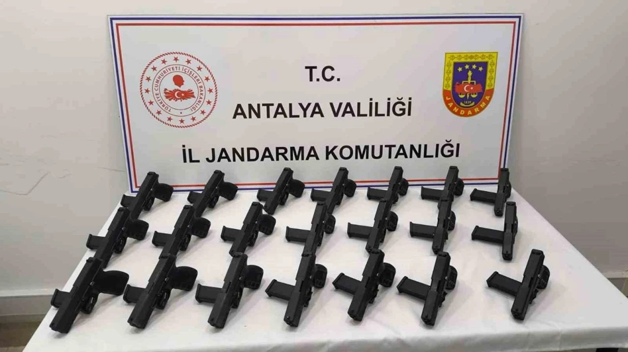 Antalya’da bir eve düzenlenen operasyonda 21 ruhsatsız tabanca, 21 şarjör ve 14 fişek bulundu. Gözaltına alınan şüpheli tutuklandı.