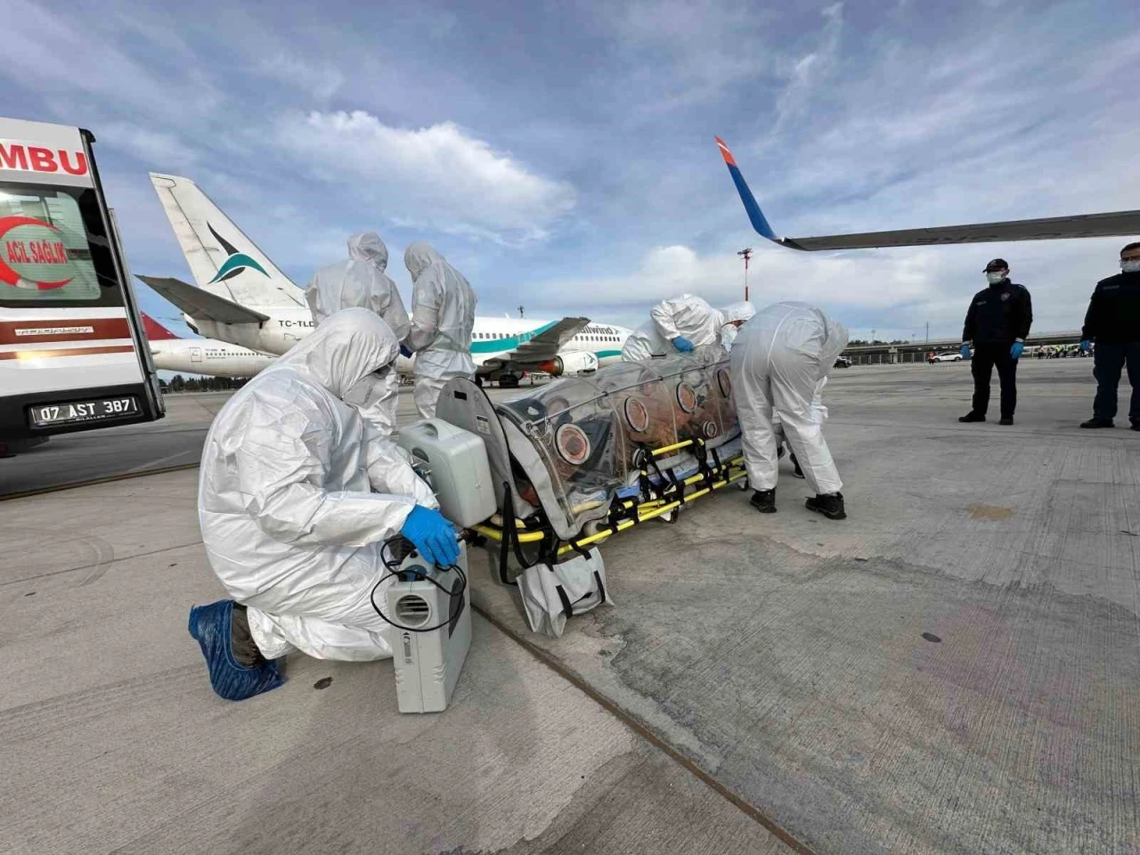 Antalya Havalimanı’nda Dünya Sağlık Örgütü’nün salgın ilan ettiği varsayılan senaryoya göre bir yolcuda tespit edilen şüpheli hastalık üzerine acil durum planları devreye alındı. Uçaktan izolasyona, hastane nakline kadar tüm süreç gerçek bir kriz anındaki gibi uygulandı.