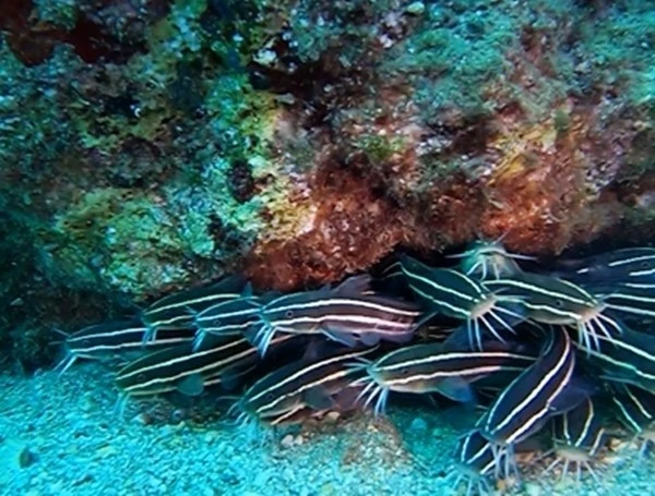 Antalya’nın Alanya ilçesinde yaklaşık 30 yıldır dalış eğitmenliği yapan Kürşat Bilgin, tarihi Alanya Kalesi’nin altındaki Korsanlar Mağarası yakınlarında yaptığı dalış sırasında daha önce Antalya Körfezi sularında hiç rastlanmamış, Kızıldeniz’e özgü zehirli dikenleri olan çizgili kedi balığı (Plotosus lineatus) sürüsü ile karşılaştı. Bilgin, yaklaşık 13 metre derinlikteki bir taşın altında, sürü halinde yaşayan bu balıkların görüntülerini sualtı kamerasıyla kaydetti. “Bu balığı Türkiye sularında hiç görmemiştim”