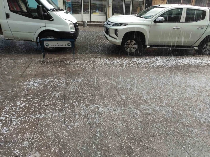 Ardahan’da etkili olan sağanak ve dolu, kenti beyaza bürüdü.