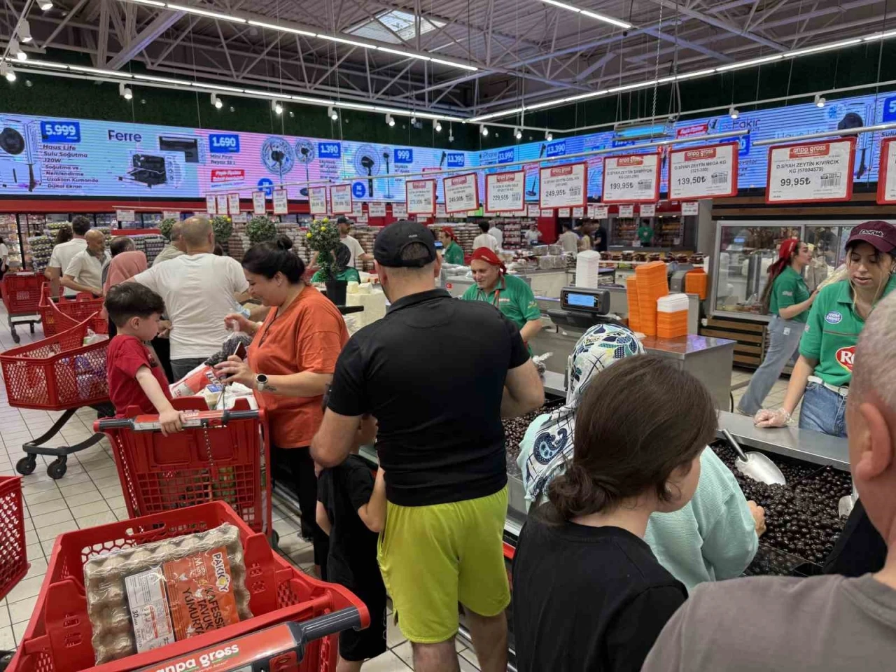 Marketin sebze ve meyveden et ve süt ürünlerine, kuru gıdadan tekstile, temizlik malzemelerinden ev aletlerine kadar binlerce çeşit üründe sunduğu indirimler, vatandaşların ilgisini büyük ölçüde çekti. Özellikle şeker, çikolata, sebze ve meyve reyonlarında oluşan sıralar dikkat çekti.